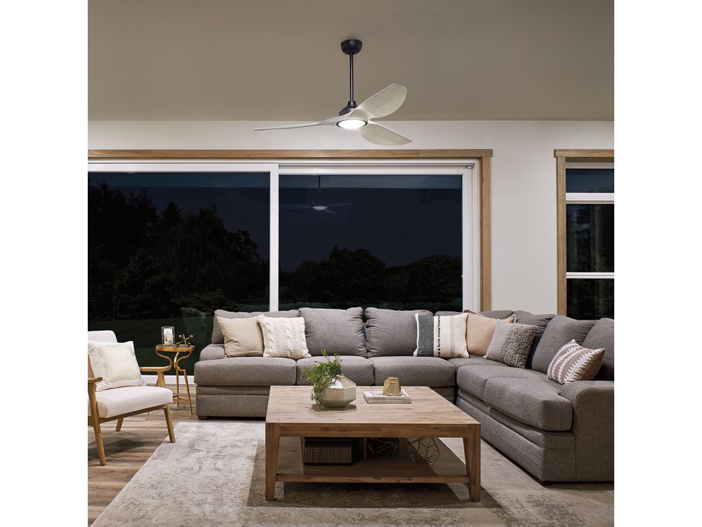 Stropný ventilátor s osvetlením KLF-IMARI-65-SBK od značky Kichler prináša industriálny dizajn s povrchovou úpravou Anvil Iron a kvalitné spracovanie. Tento model z ponuky Elstead Lighting