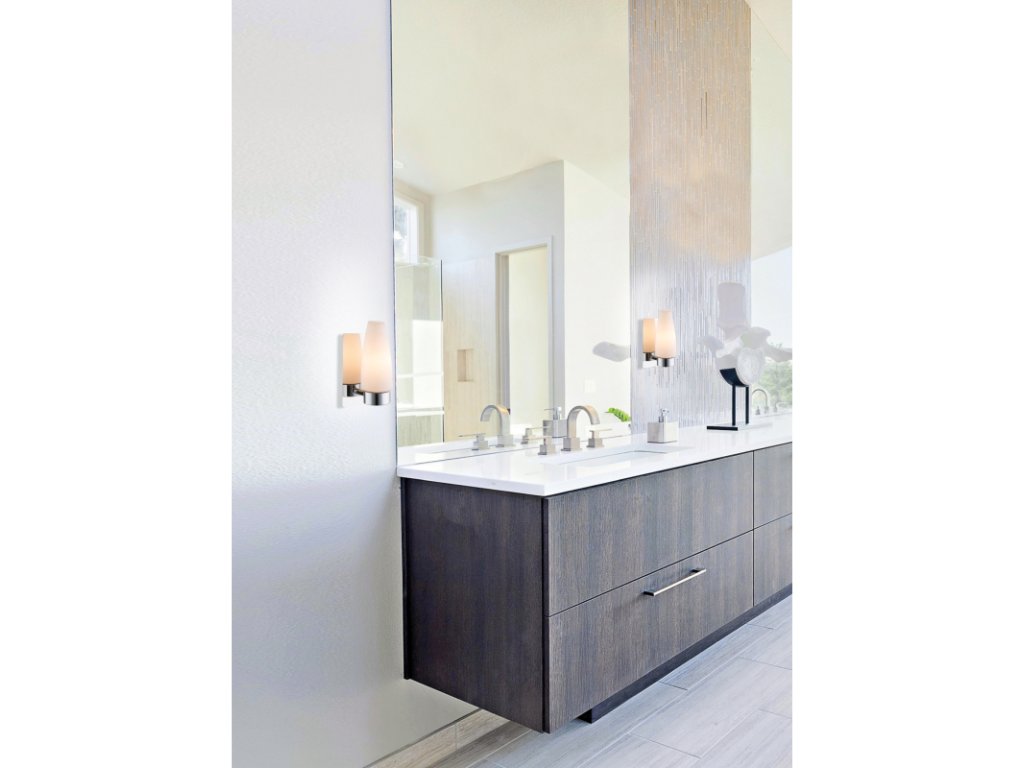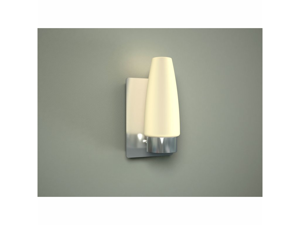 Nástenné svietidlo, chróm, nerez, sklo opál biele, IP44, ŠxV:100x185, H:105, bez žiarovky 1xE14, max. 25W 230V.