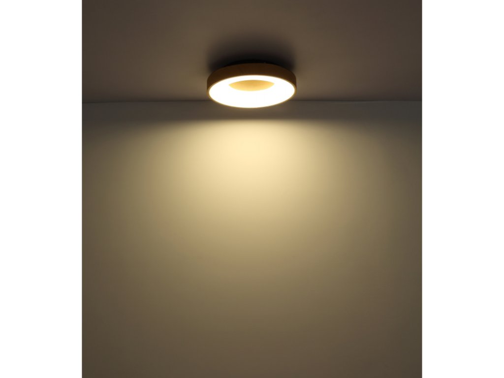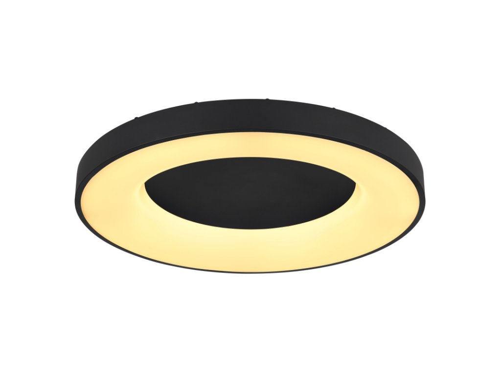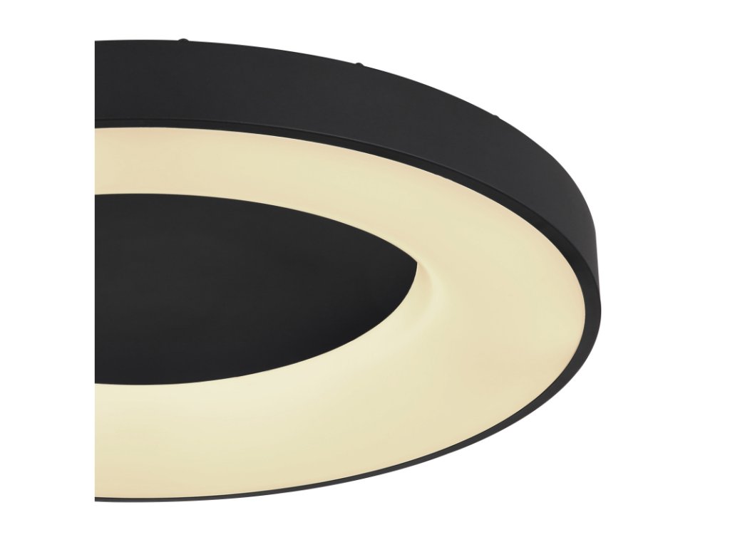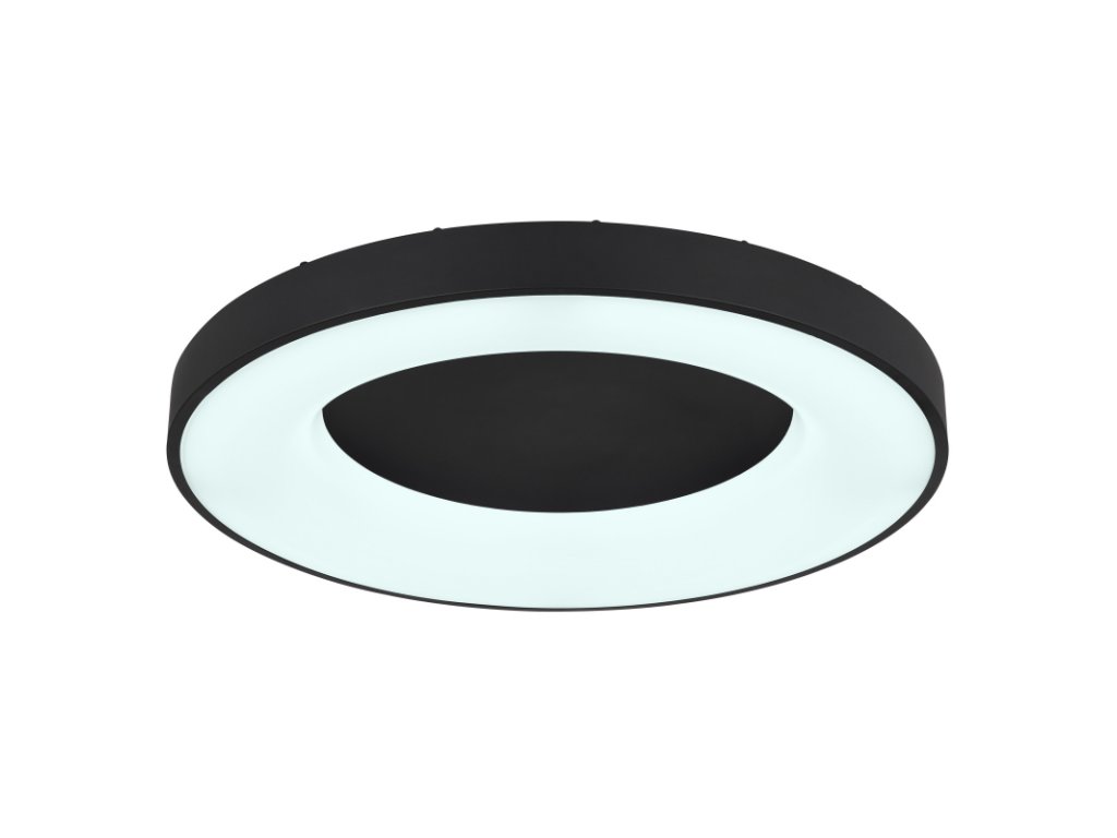 Doplňte do svojho interiéru toto krásne svietidlo a nebudete ľutovať. Skladá sa z čiernej kovovej platne, okolo ktorej je pripevnený čierny kovový krúžok. Pomocou dodávaného diaľkového ovládača môžete nielen stlmiť stropné svetlo, ale tiež individuálne nastaviť farbu svetla v niekoľkých stupňoch od 2700 Kelvinov (teplá biela) do 6000 Kelvinov (studená biela) a tiež mať funkciu nočného svetla.