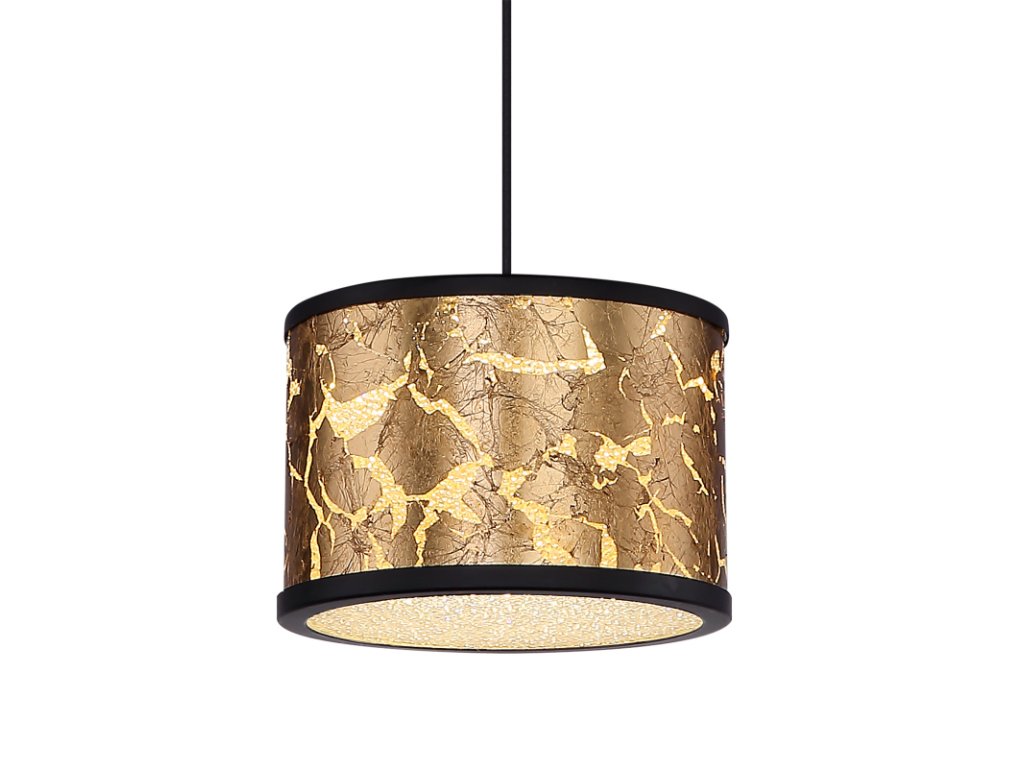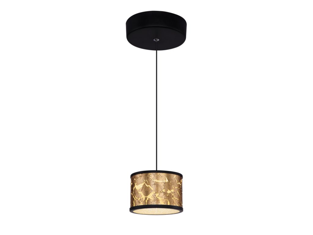 Táto elegantná závesná lampa ponúka kombináciu prvkov zlatej fólie a čierneho kovu. Špeciálna konštrukcia kombinuje starožitný dizajn s modernou eleganciou. Číre plastové kryštály sa trblietajú, keď svietidlo svieti. Priťahuje pozornosť každého a ponúka príjemné osvetlenie neutrálnym bielym svetlom (4000 K).