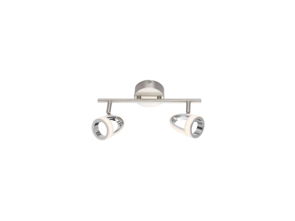Moderné svietidlo vo farebnom prevedený matný nikel kombinovaný s chrómom a saténovým plastom na tienidle. Svietidlo je veľmi elegantné a hodí sa do moderných interiérov. Zabudovaný LED svetelný zdroj ponuka úsporné osvetlenie v teplej bielej farbe. Tienidlá svietidla je možne nasmerovať podľa potreby. Svietidlo je so spínačom zap/vyp.