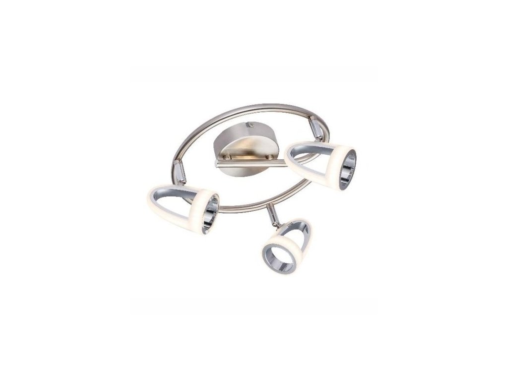 Moderné svietidlo vo farebnom prevedený matný nikel kombinovaný s chrómom a saténovým plastom na tienidle. Svietidlo je veľmi elegantné a hodí sa do moderných interiérov. Zabudovaný LED svetelný zdroj ponuka úsporné osvetlenie v teplej bielej farbe. Tienidlá svietidla je možne nasmerovať podľa potreby.