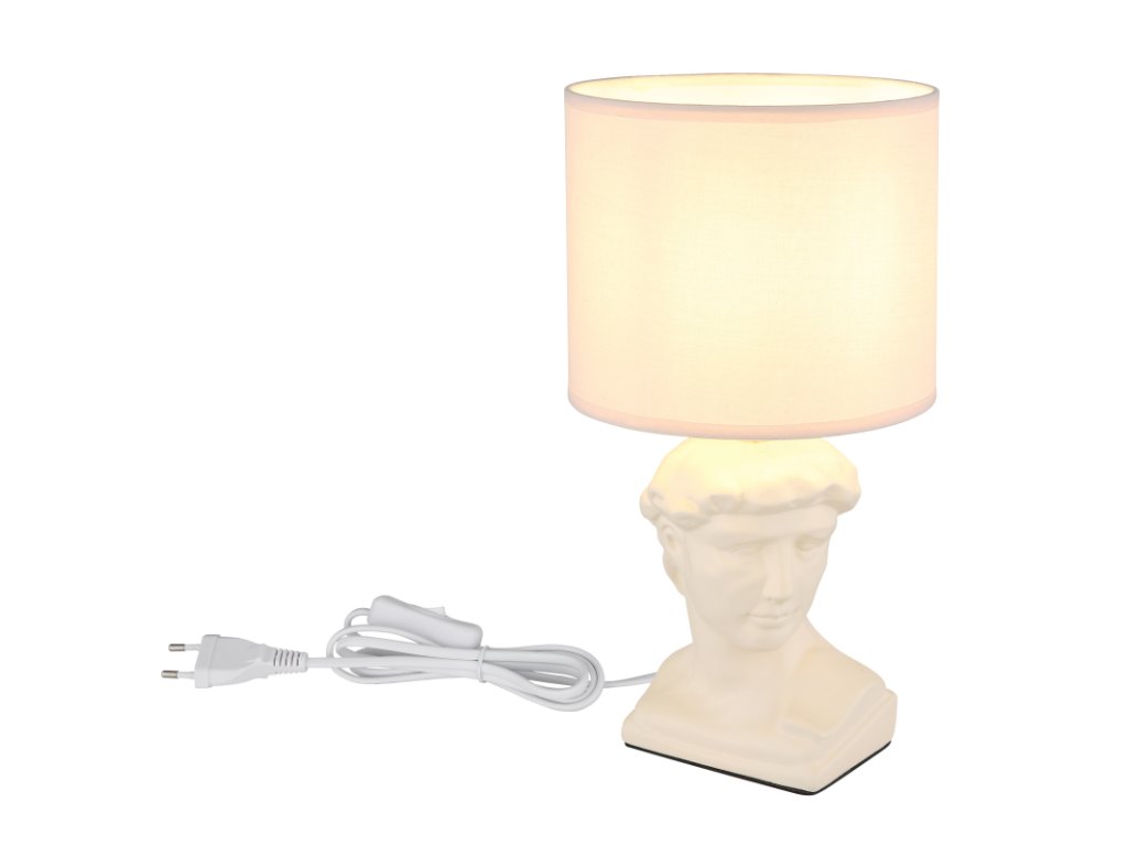 Stolové svietidlo, keramika farba kari, textil farba kari, kábel PVC biely, kolískový vypínač na kábli, ø 175mm, V: 330mm, dĺžka kábla 1300mm, bez žiarovky 1xE14, max. 40W 230V