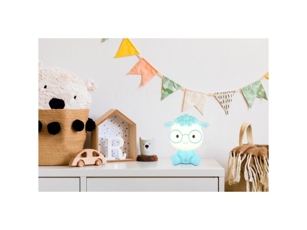 Stolové svietidlo, plast modrý a biely, dotykové zap./vypnutie, dotykový stmievač, bez adaptéra, USB-A 2.0 - USB-C, doba nabíjania cca 2 hod. a svietenia cca 10 hod., svieti počas nabíjania, DxŠxV:210x150x220mm, LED 1W 230V, výstup 32lm, 3000K