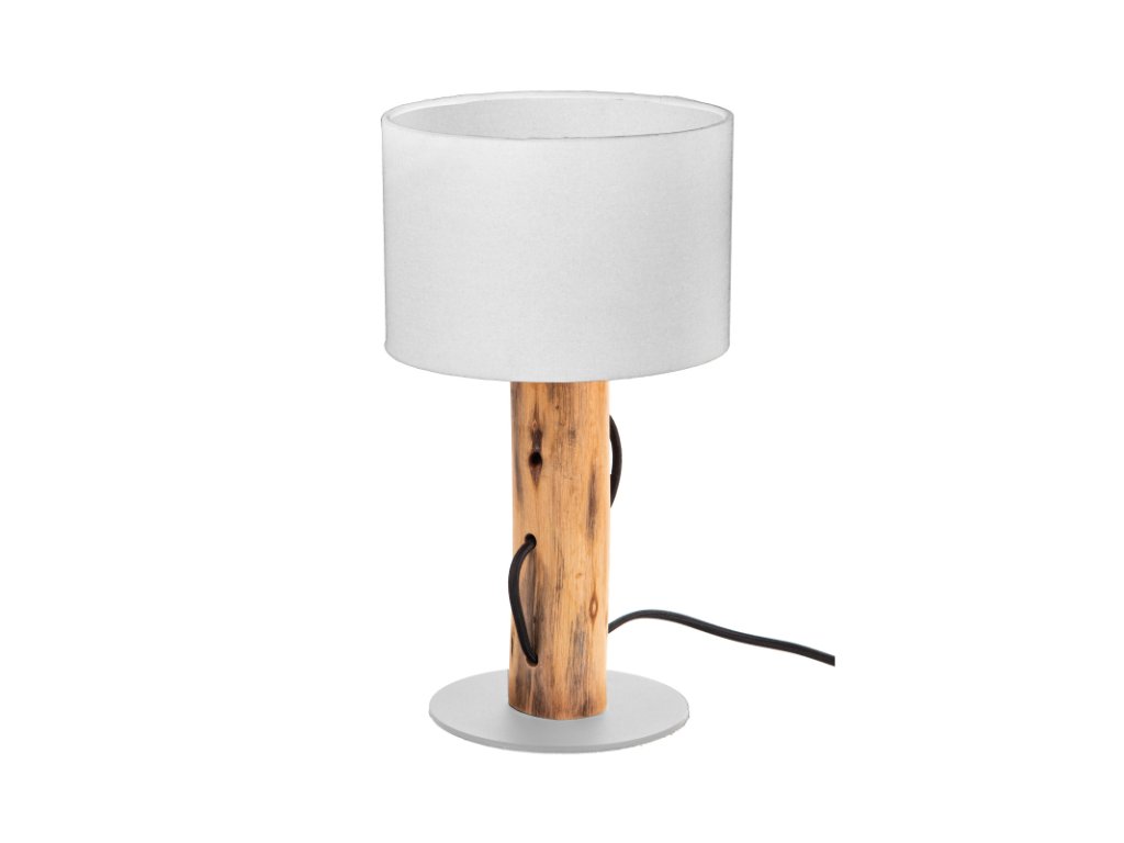 Stolná lampa, prírodná farba dreva, kov, biely textil, kolískový vypínač na kábli, eukalyptové drevo, prirodzene pestované, ø: 180 mm, V: 320 mm, bez žiarovky 1xE14, max. 40W 230V