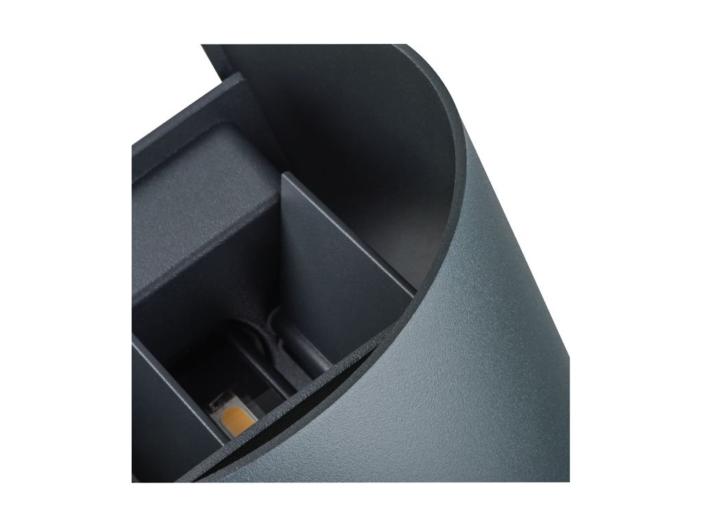 Nástenné svietidlo v modernej grafitovej farbe vyrobené z kvalitnej hliníkovej zliatiny. Svietidlo so zabudovaným LED systémom pre úsporné používanie. Vďaka ochrane IP54 je chránené pred vonkajšími poveternostnými vplyvmi.