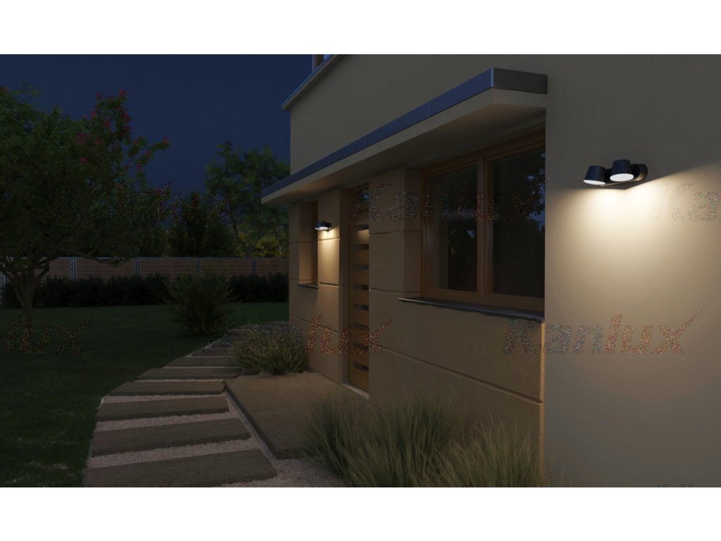Vonkajšie nástenné svietidlo v modernom grafitovom prevedení. hlavu svietidla je možne otočiť o 360 stupňov. Vyrobené z hliníka. Zabudovávaný LED zdroj ponúka neutrálne biele svetlo.