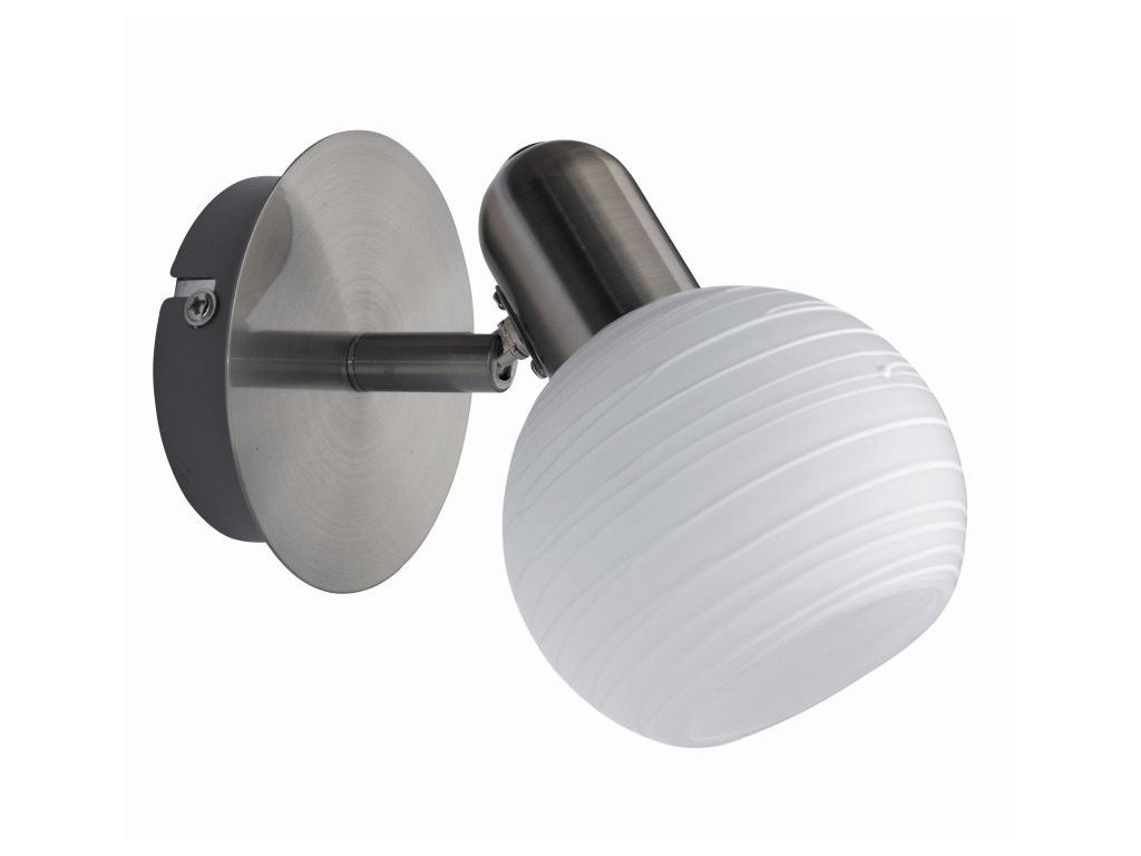 Nadčasovo vyzerajúce bodové svietidlo zo saténového chrómového kovu a biele pruhované vzorované sklenené tienidlo. Môže byť skvelým doplnkom do vašej spálne alebo obývačky a pod. Žiarovka nie je v balení, odporúčame použiť LED žiarovky.