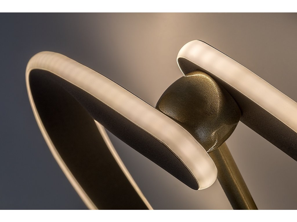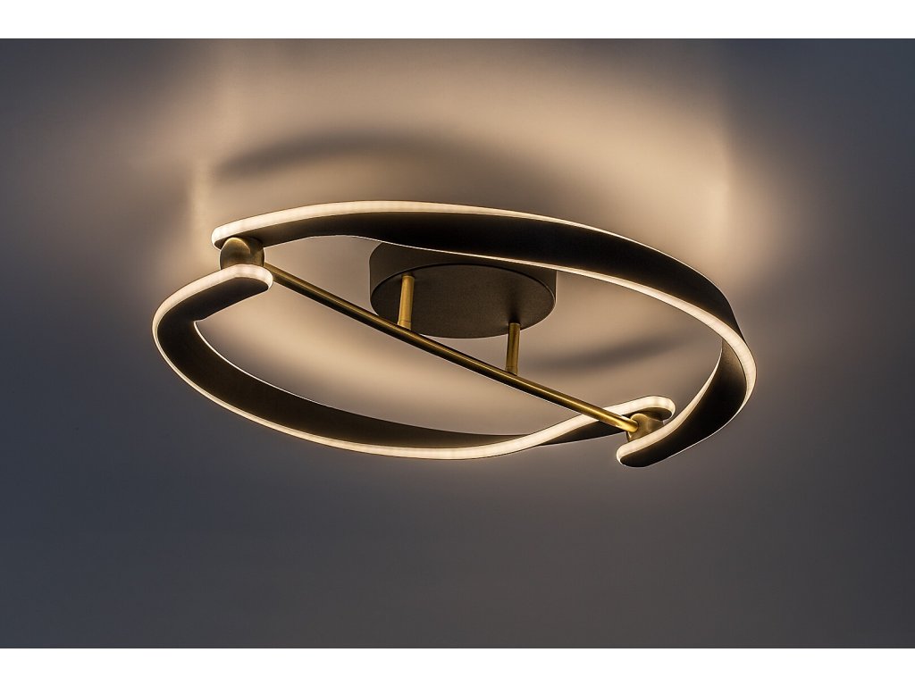 Stropné svietidlo Rabalux Adalind LED prináša moderný a kreatívny dizajn priamo do vášho domova. Kombinácia čiernej a zlatej farby dodáva svietidlu elegantný vzhľad, zatiaľ čo kovový úchyt a biele plastové tienidlo zvýrazňujú jeho sofistikovanosť. Štýlový dizajn je založený na dvoch skrútených prvkoch tvoriacich okrúhly tvar, spojených zlatou vodorovnou nosnou lištou. Svietidlo sa jednoducho pripevní na strop pomocou okrúhleho čierneho dekoratívneho podstavca.