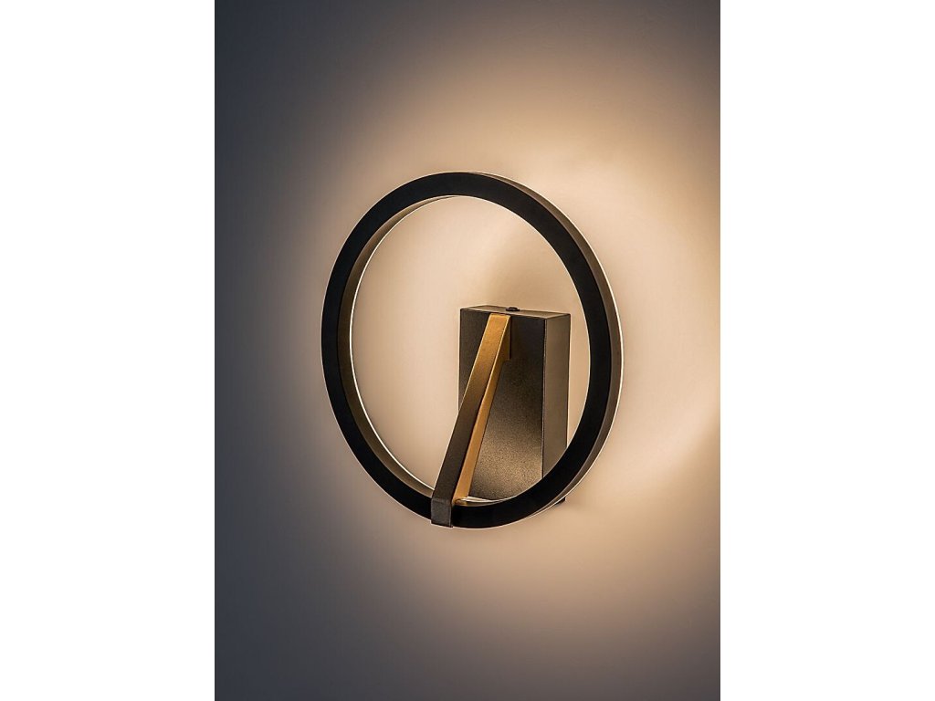 Moderné nástenné svietidlo Rabalux Renara – čierny prstencový dizajn so zlatým detailom, integrované LED a teplé biele svetlo.
