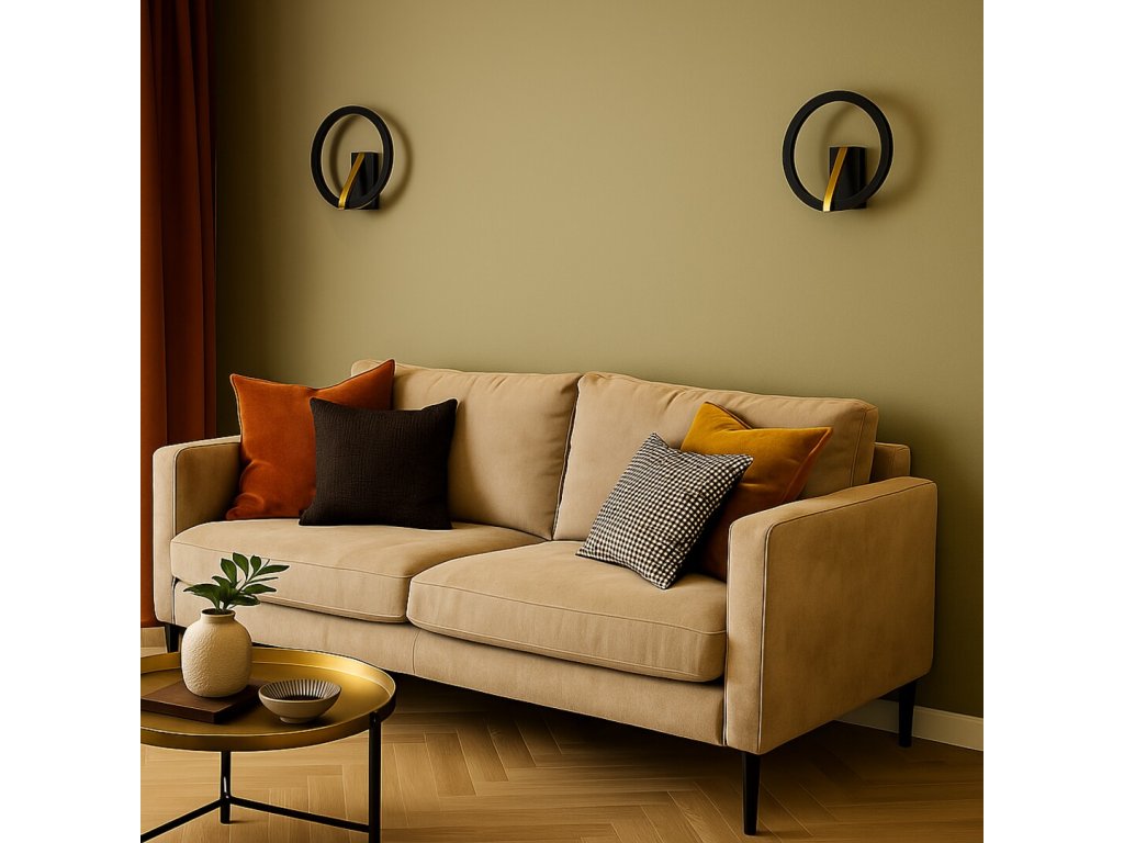 Objavte nástenné svietidlo Rabalux Renara – moderný doplnok, ktorý dodá vášmu interiéru šmrnc a eleganciu. Jeho minimalistický dizajn okamžite zaujme: čierny prstencový prvok so zlatým detailom pôsobí luxusne a štvorcový podstavec dodáva svietidlu štýlový charakter.