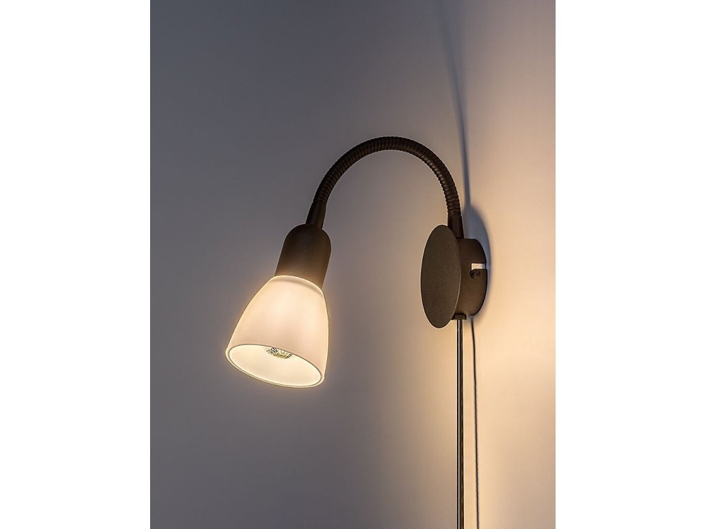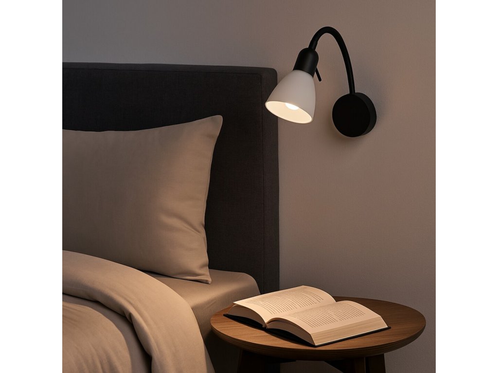 Svietidlo sa montuje na stenu pomocou malého okrúhleho podstavca a vďaka ohybnému ramenu si môžete smer svetla prispôsobiť podľa potreby – ideálne pri čítaní alebo večernej práci.