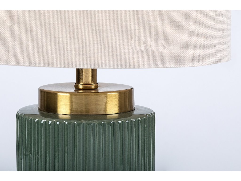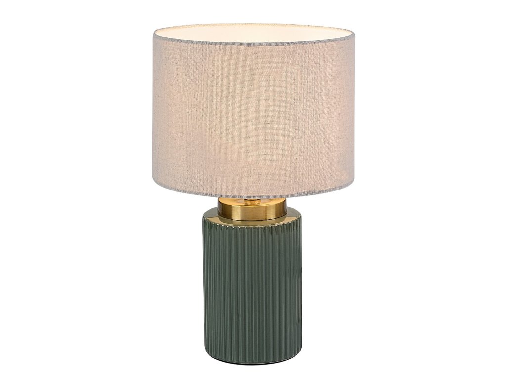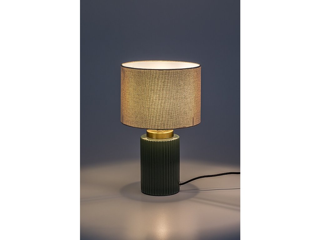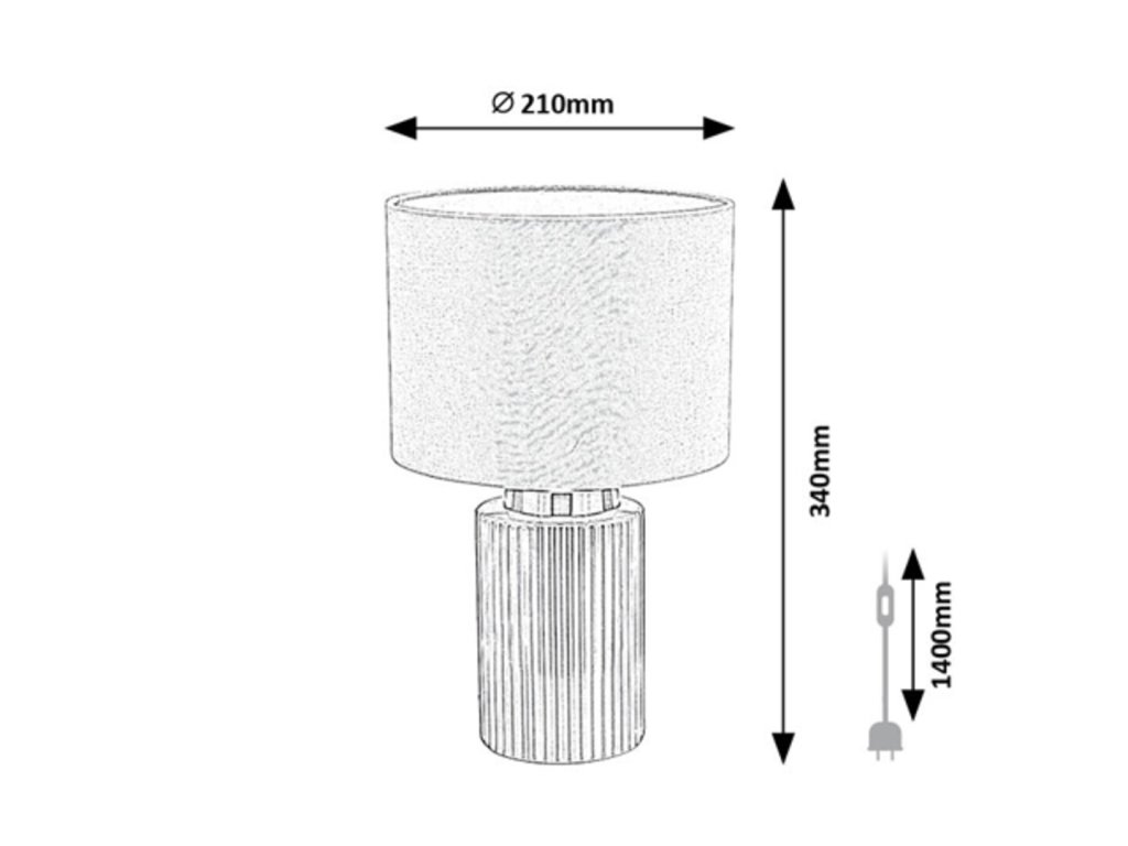 Stolnú lampu Rabalux Glovy odporúčame tým, ktorí hľadajú starostlivo navrhnuté doplnkové svietidlo do spálne alebo obývačky. Vďaka striedmym farbám sa tento model hodí do širokej škály interiérov. Môžete ju umiestniť na nočný stolík alebo na stôl. Úchyt lampy je vyrobený zo zelenej keramiky s rebrovaným vzorom, zatiaľ čo tienidlo je z bieleho textilu. Tienidlo je valcovité a otvorené v hornej a dolnej časti. Vďaka jasnej farbe tento model prepúšťa veľa svetla, takže sa dá použiť aj ako lampa na čítanie. Možno ho prevádzkovať s jednou žiarovkou s príkonom do 40 W. Typ pätice je E14. Nočné svietidlo je doplnené čiernym textilným káblom a káblovým spínačom. Dodáva sa bez svetelného zdroja.