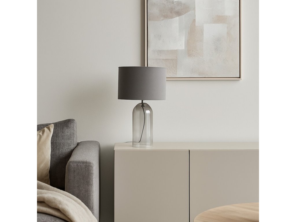 Elegantné stolové svietidlo Luxin zaujme dymovým skleneným podstavcom a sivým textilným tienidlom. Dostupné v dvoch veľkostiach – 45 cm a 33 cm. Vytvára príjemné, tlmené svetlo a štýlovo doplní moderný aj klasický interiér.