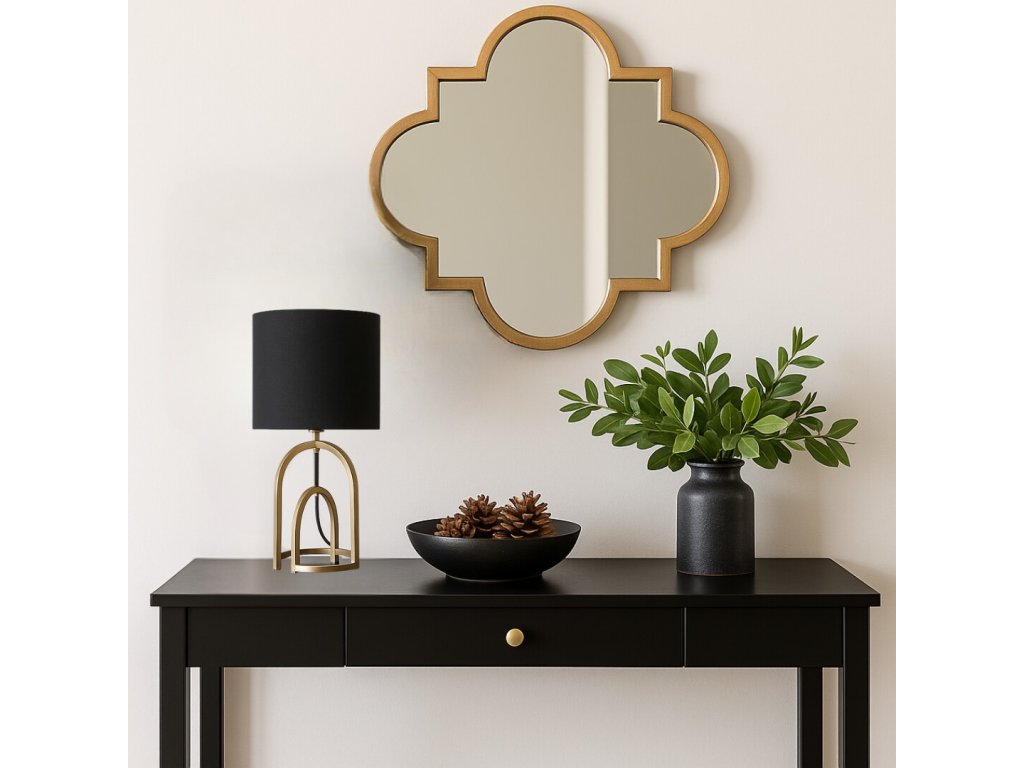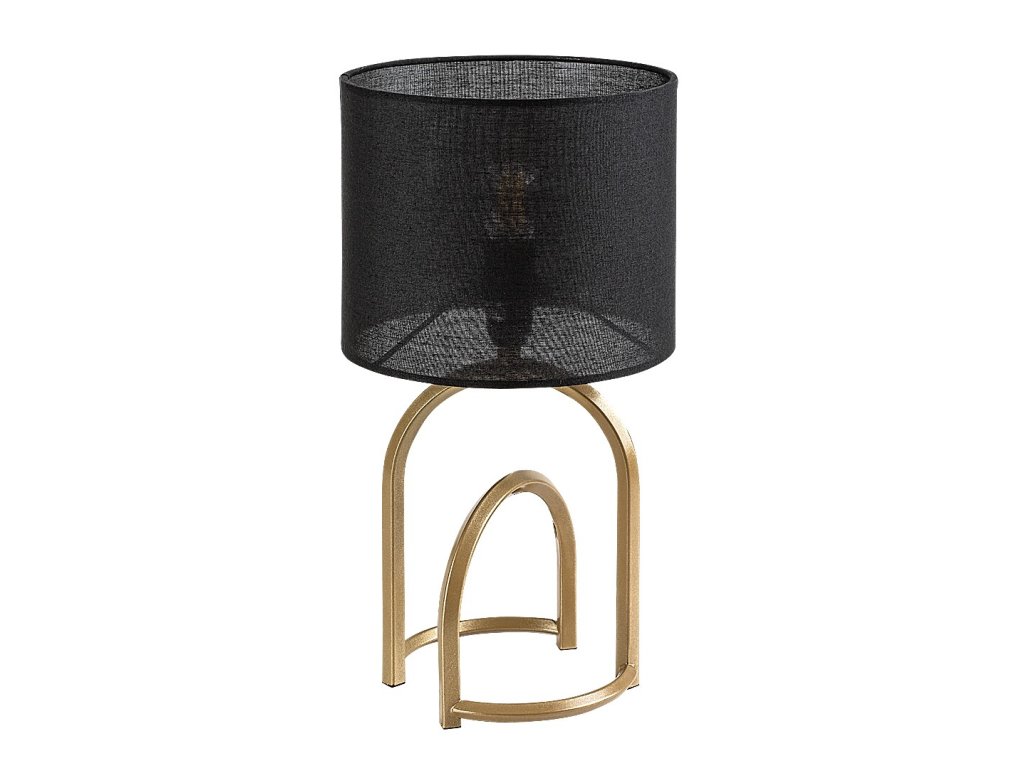 Kovová konštrukcia v zlatej farbe so štýlovým čiernym textilným tienidlom