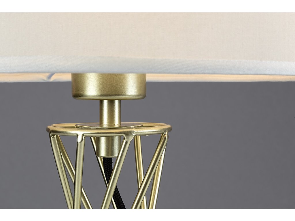 Stolová lampa Rabalux Nivra je skvelou voľbou pre všetkých, ktorí hľadajú kreatívny dizajn v modernom a elegantnom prevedení. Lampa zaujme kombináciou zlatej a bielej farby, pričom stojí na stabilnej kovovej konštrukcii v tvare kužeľa s okrúhlou základňou.