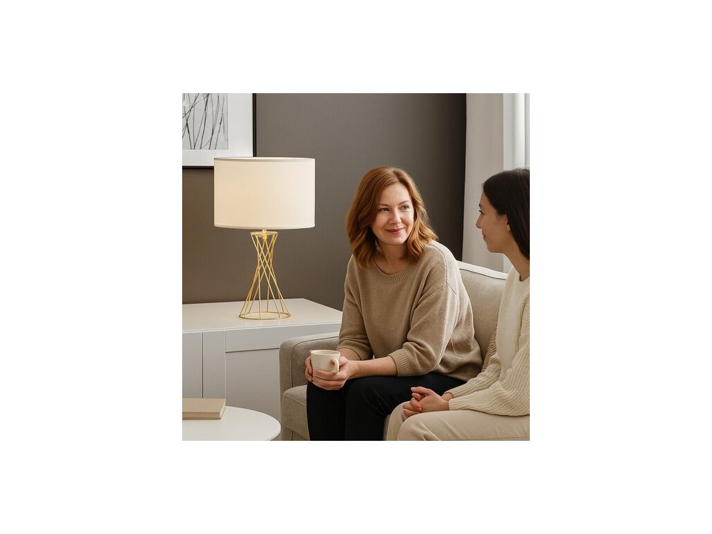 Valcovité tienidlo je otvorené zhora aj zdola a vyrobené z jemného bieleho textilu, vďaka čomu prepúšťa dostatok svetla – ideálne aj na čítanie či relaxáciu. Stolová lampa je perfektným doplnkom do spálne alebo obývačky, kde vytvorí útulnú atmosféru.