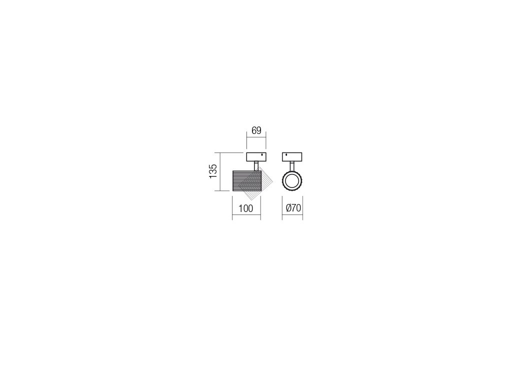 Orientovateľné nástenné / stropné svietidlo do interiéru, kovová a extrudovaná hliníková konštrukcia, povrchová úprava v matnej zlatej zvonka a matnej čiernej zvnútra. 1x max 7W, GU10, 230V, 50Hz.