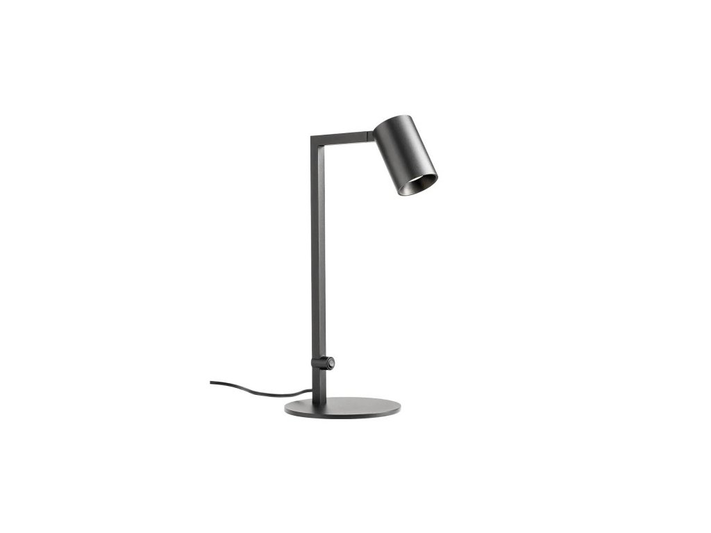 Stolové interiérové svietidlo, konštrukcia z hliníka a kovu liateho pod tlakom, maľovaná pieskovo čiernou farbou.