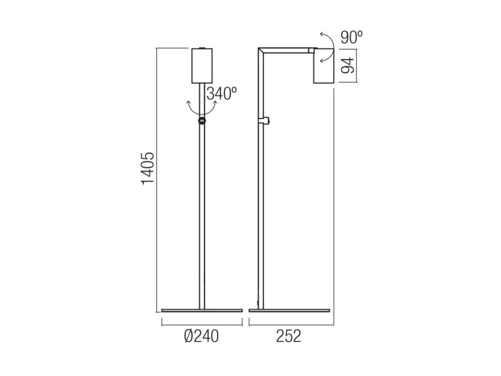 Stojanové interiérové svietidlo, konštrukcia z hliníka a kovu liateho pod tlakom, maľovaná starožitným bronzom.