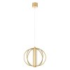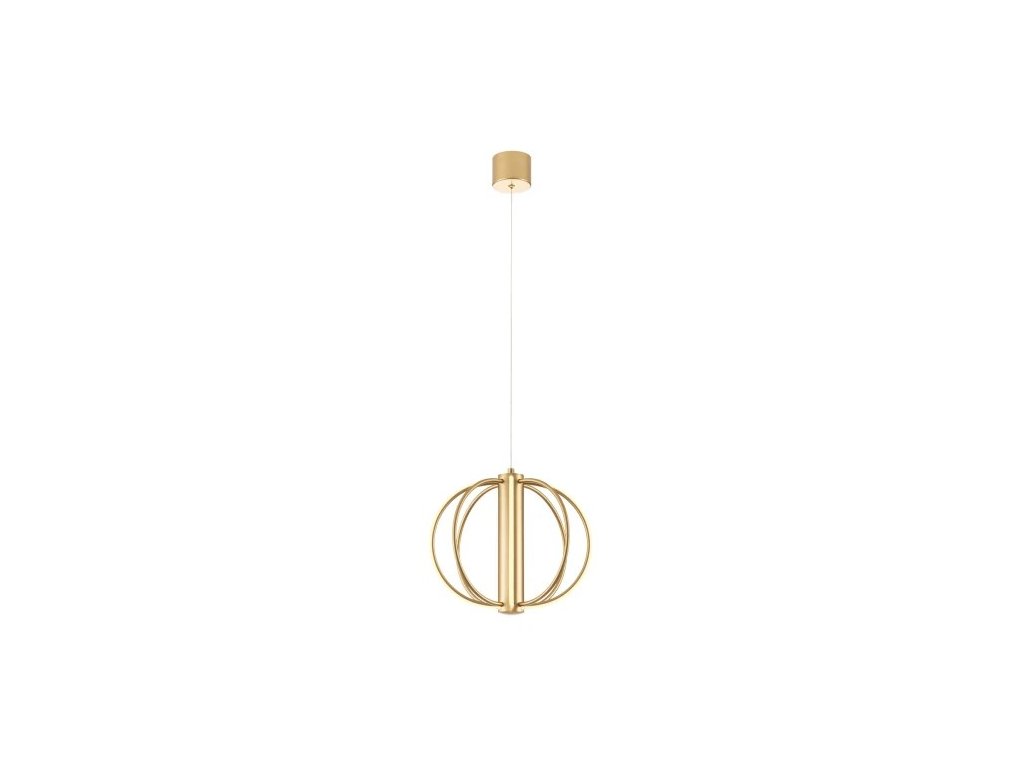 Závesné interiérové svietidlo vybavené LED diódami SMD, TRIAC stmievateľné, konštrukcia z hliníka a kovu lakovaná v matnej zlatej farbe, difúzor z opálového bieleho silikónu.