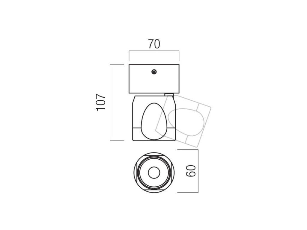 Stropné/nástenné interiérové svietidlo, nastaviteľný spot vybavený COB LED diódami, kovová a extrudovaná hliníková konštrukcia natretá strieborno-kávovou farbou, difúzor z priehľadného skla. Svietidlo je TRIAC stmievateľné.