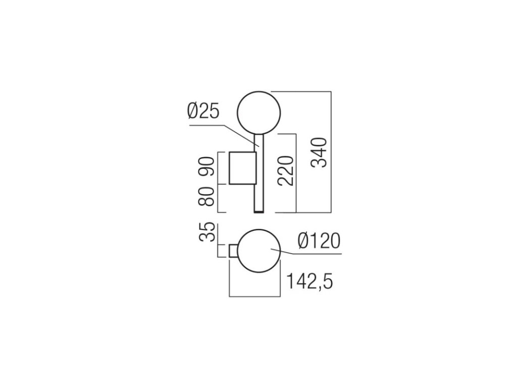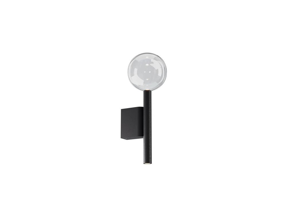 Nástenné interiérové svietidlo s COB LED diódami s priamym/nepriamym vyžarovaním svetla, stmievateľné TRIAC, kovová a hliníková konštrukcia natretá v matnej čiernej farbe, difúzory z priehľadného fúkaného skla.