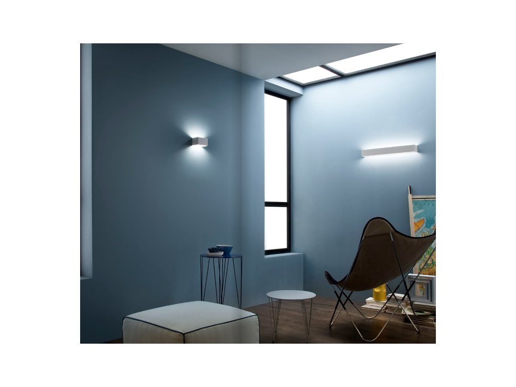 Interiérové nástenné svietidlo, ktoré je vybavené SMD LED diódami, s priamym / nepriamym rozptylom svetla. Konštrukcia z tlakovo liateho hliníka s elektrostatickým maľovaním v matnej bielej.