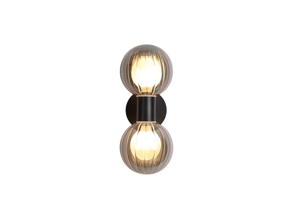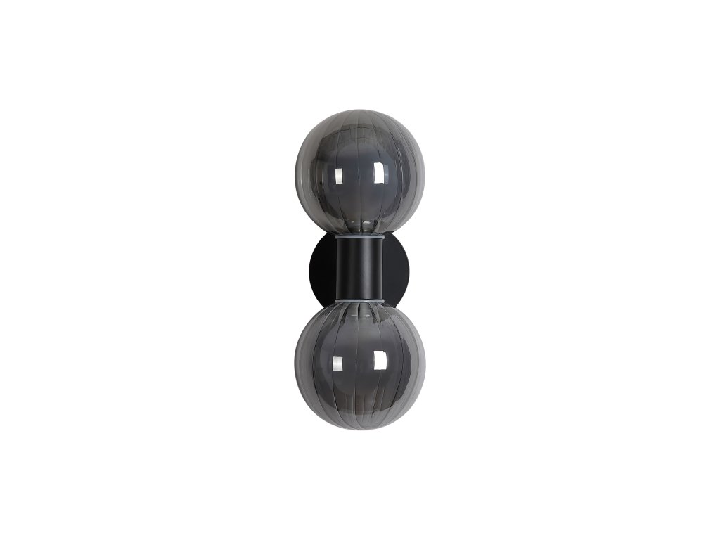 Nástenné svietidlo Luminsphere 2Lt, matný čierny kov s dymovým sklom
