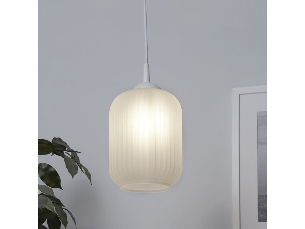 Perlový prívesok - biele matné sklo, biele zavesenie