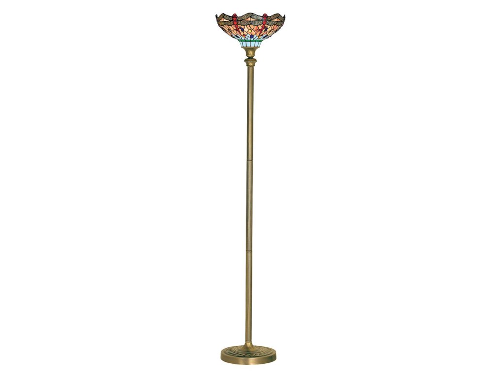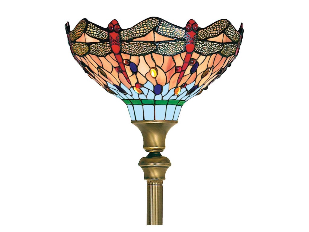 Starožitná mosadzná stojaca lampa s krásnym sklom Tiffany s dizajnom vážky. Pridajte túto lampu do vášho interiéru, aby ste zdôraznili sofistikovanosť vášho domova alebo kancelárie. Ide o klasický predmet, ktorý sa bude hodiť do tradičného domáceho prostredia. Žiarovka nie je v balení, odporúčame požiť LED žiarovky.