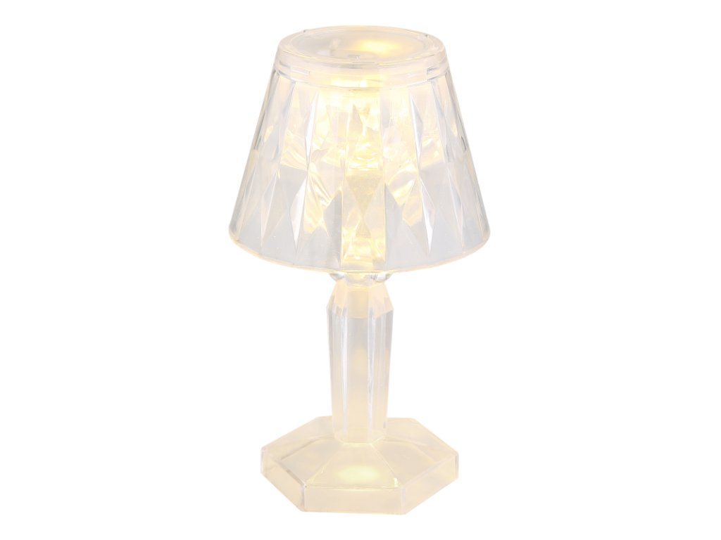Stolové svietidlo, číry a biely plast, posuvný spínač, batérie 3x LR1130 160mAh, ø: 67mm, V: 120mm, 12x 2 sada v displeji, 2ks v sade, vrátane LED 0,06W 4,5V 2800K