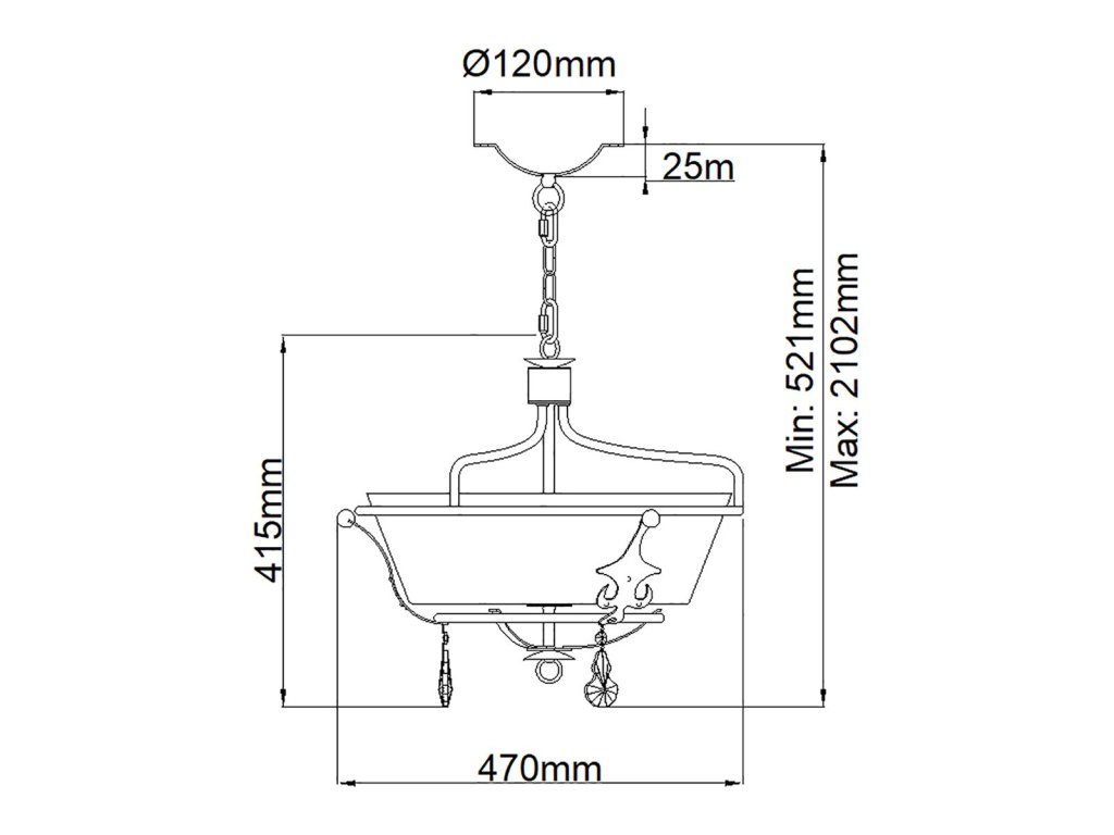 | Rozmery (mm): | H: 415mm D: 470mm Min/Max Drop: 521mm - 2102mm |